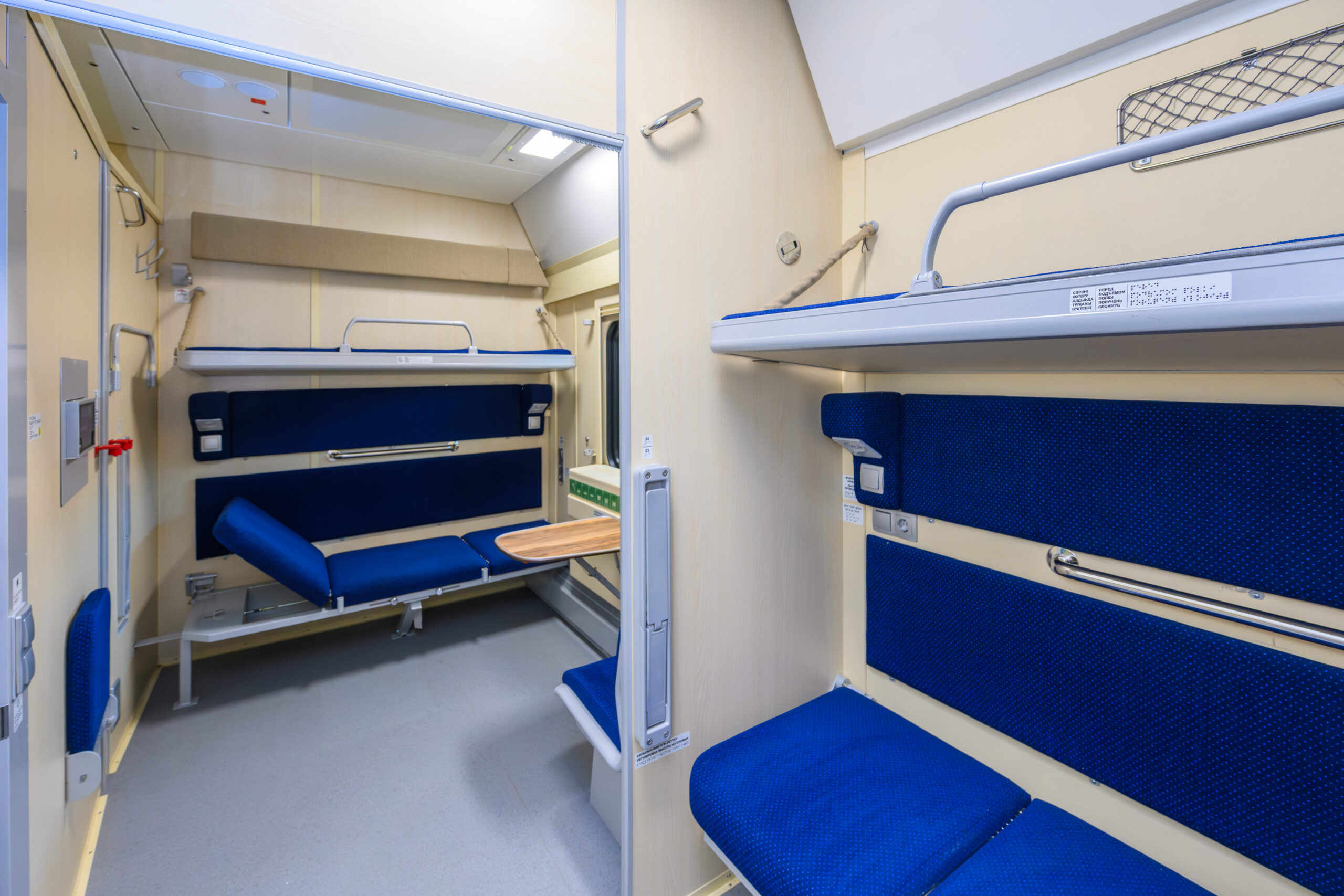 Эргономичные поручни у каждой полки, светодиодное освещение в тамбурах и возможность индивидуально регулировать температуру в каждом купе обеспечивают высокий комфорт в поездках. Также предусмотрены индивидуальные сейфы для хранения ценных вещей пассажиров. Внутренние покрытия вагонов выполнены из экологичных гипоаллергенных материалов. Система обеззараживания воздуха снижает риск инфекций.